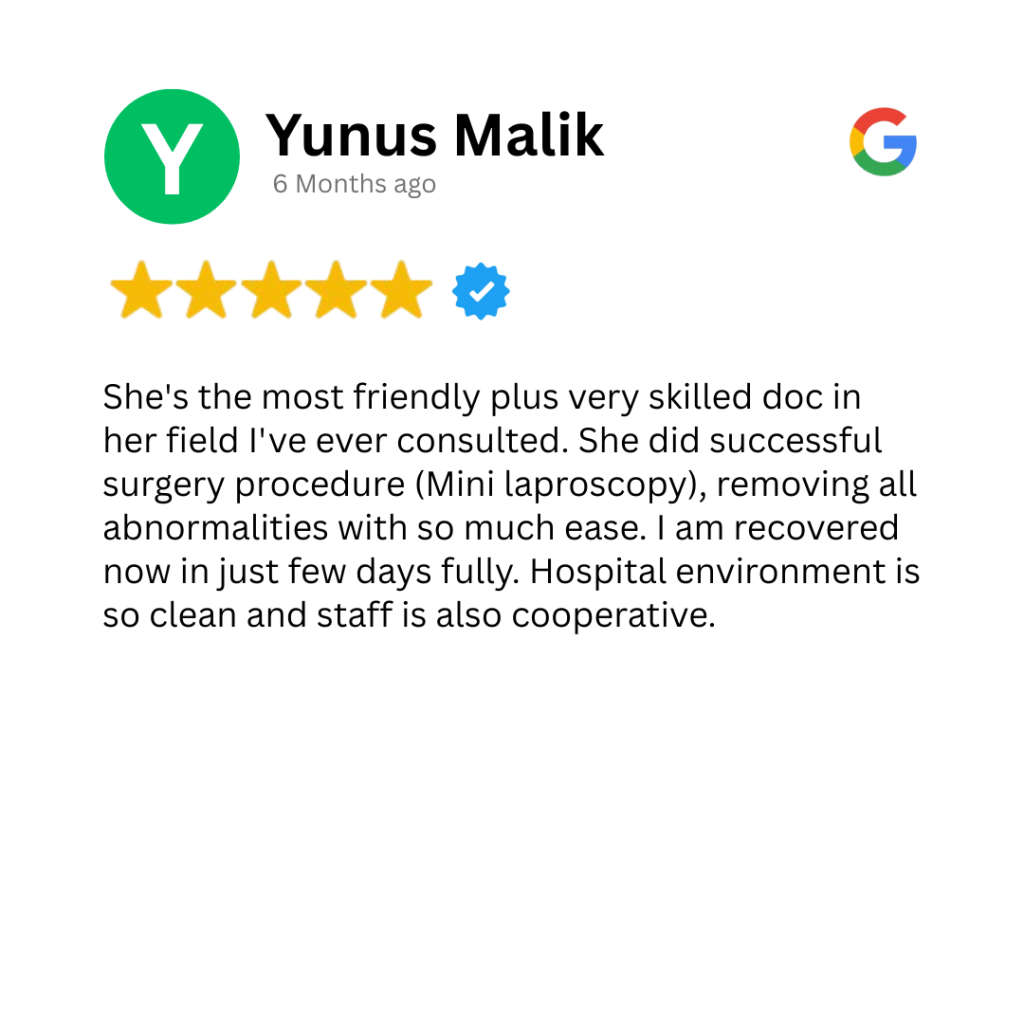 Welcome to our Patient Testimonials page, where real patients share their experiences with Dr. Kiran Usman, a dedicated gynecologist. From successful surgeries to expert guidance during pregnancy and beyond, these heartfelt stories reflect the trust, care, and medical expertise that Dr. Usman offers. Read firsthand accounts of patients who have found reassurance, comfort, and successful outcomes through Dr. Usman’s compassionate care. Whether you’re seeking treatment or looking for inspiration, these testimonials offer a glimpse into the difference one doctor can make in the journey to better health.