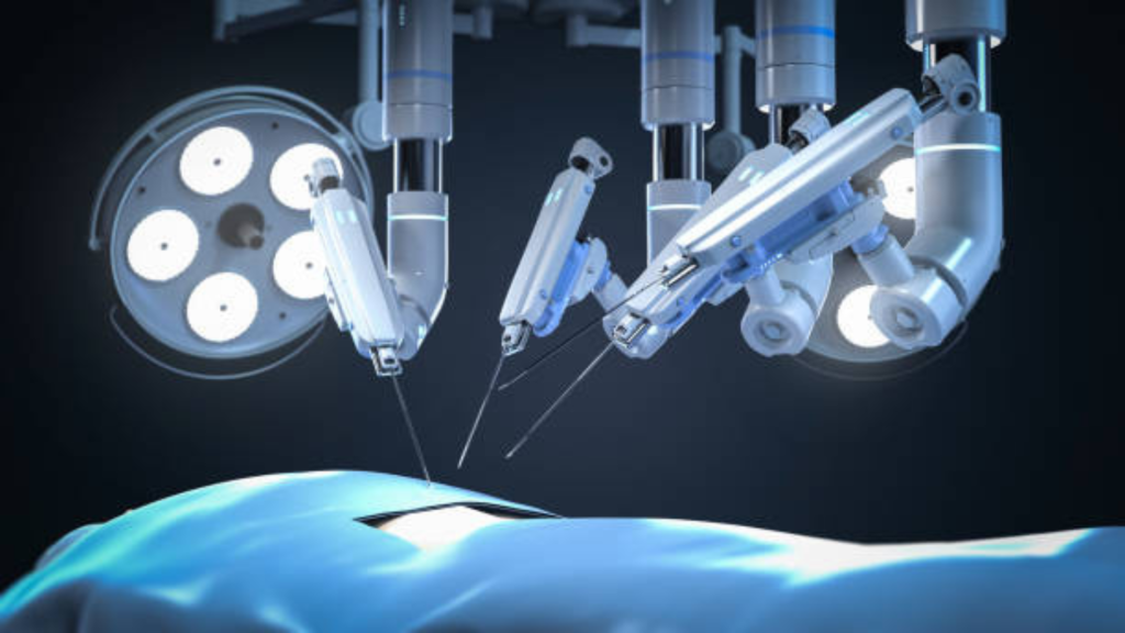 Robotic Arms: The robot has multiple arms equipped with tiny surgical instruments that mimic the surgeon’s hand movements but with greater accuracy and no hand tremors.